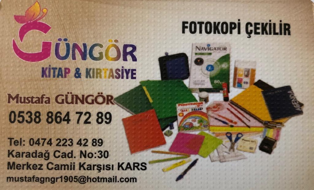 Merkez Camii karşısı Karadağ Caddesi No: 30 KARS adresindeki Güngör Kitap ve Kırtasiye’nin sahibi Mustafa Güngör, Ortakapı’yı Kars’ın en yaşanabilir mahallesine dönüştürmek ve daha yeni hizmetlerle tanıştırmak için aday olduğunu söyledi.