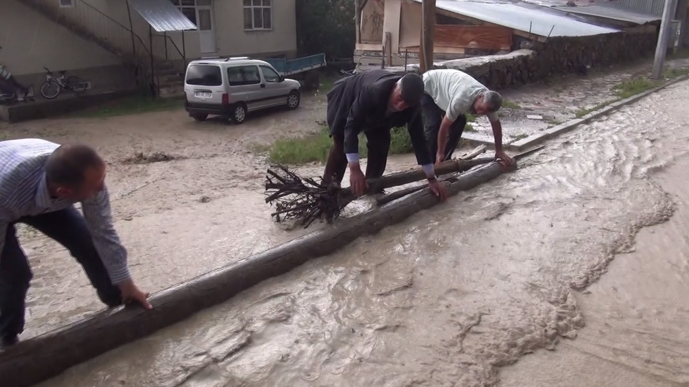 Erzurum’un Narman İlçesi’nde akşam saatlerinde etkili olan sağanak yağmur sele dönüştü. Baba Dağı’nda şelalelerin oluştuğu selde mahalle sular altında kaldı. Dağdan akan kayalar cadde ve sokaklara kadar geldi, vatandaşlar evlerine su dolmaması için odun direk ve tahtalarla selin önünü kesmeye çalıştı.