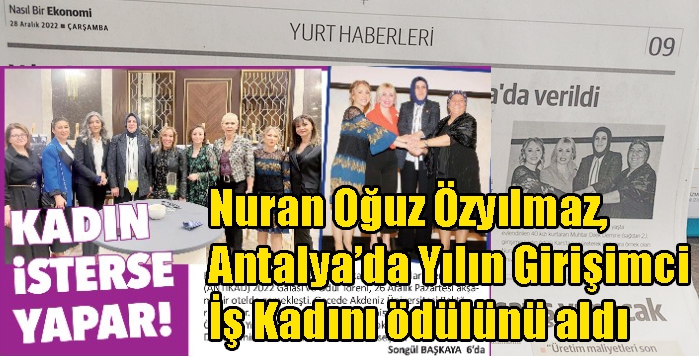 Nuran Oğuz Özyılmaz, Antalya’da Yılın Girişimci İş Kadını ödülünü aldı