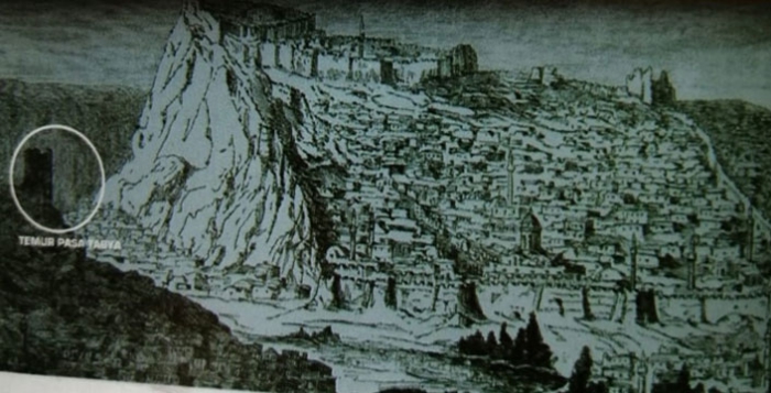 Sayın Valim, çalışılmakta olan bu bölge Kars’ın en eski ve buram buram tarih kokan bölgesidir. Yapılmakta olan bu proje ile bu bölgedeki tarihi doku gün yüzüne çıkmış olacaktır. Fakat bu projede tarihi dokunun tamamen gün yüzüne çıkması için siz Sayın valimden hem şahsım hem de Kars halkı adına uygun görürseniz bir ricada bir talepte bulunmak istiyorum. Öncelikle bu bölgeyi bir bütün olarak ele aldığımızda bu bölgede iki eksik kalıyor. Bunun birincisi Taşköprünün üst tarafındaki, Temur Paşa Tabyası ve Kulesidir. Temur Paşa Tabyası günümüzde hala ayakta iken kulesi tarih içinde zamanla yıkılmıştır. Bu arada Temur Paşa Tabyasının üzerine tabyanın kulesinin olduğu yere en başından beri karşı çıktığım ve yapıldıktan sonra defalarca yıkım kararı çıkarttığım; en son olarak Sayın Cumhurbaşkanımızın “ucube” olarak nitelediği anıt yapılmıştı. Yapılan bu anıt hem tabyaya büyük zarar vermiş, anıt yapılırken kulenin dışında olan giriş tarafı tahrip edilmişti. Temur Paşa Tabyasının kulesi aşağıdaki tarihi resimlerde de görülecektir: