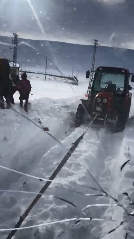 Kars’ın Selim İlçesi’ne bağlı Beyköy’e giden öğrenci servisi köye yakın bir alanda kara saplanınca öğrenciler kara bata-çıka evlerine gitmek zorunda kaldılar.