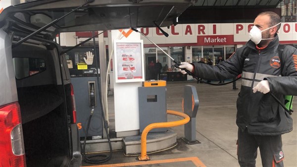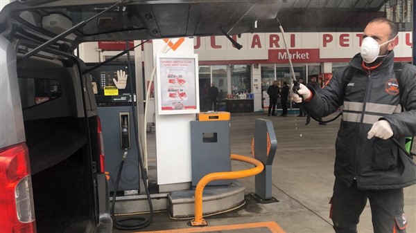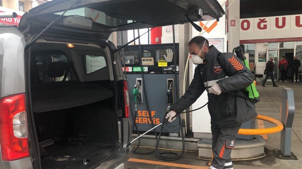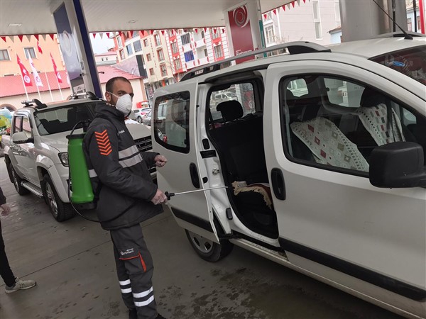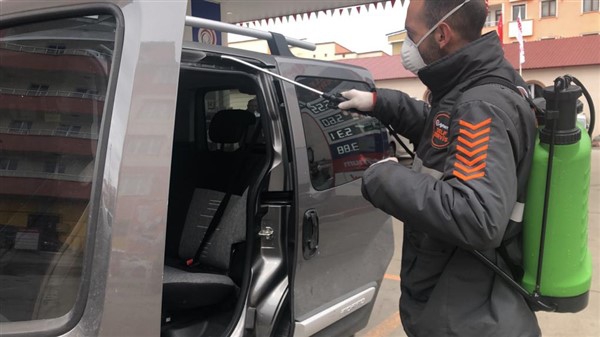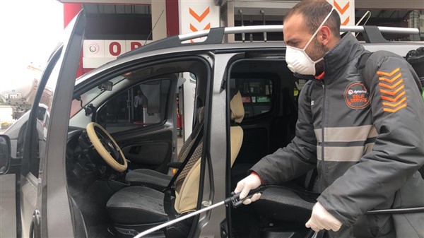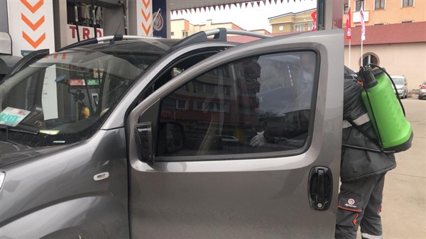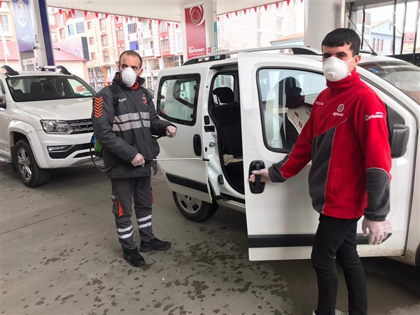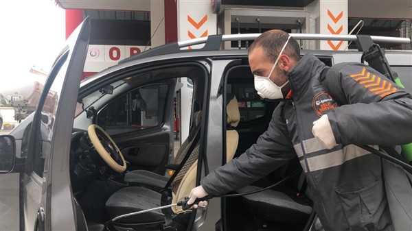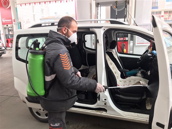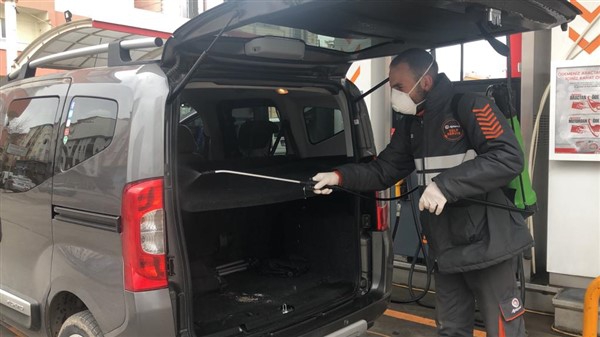 Oruçoğulları Petrol, istasyona giren araçları ücretsiz dezenfekte ediyor