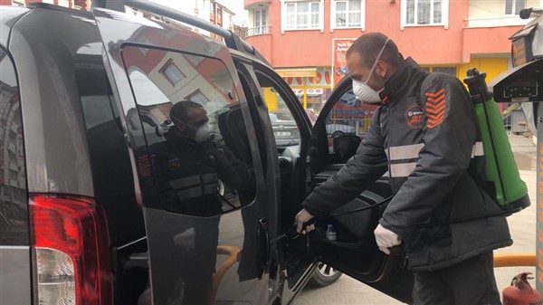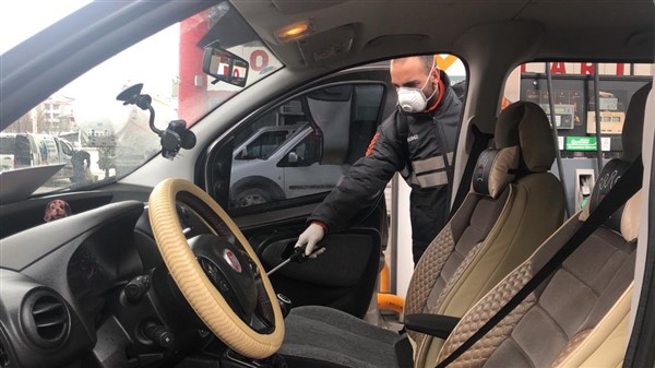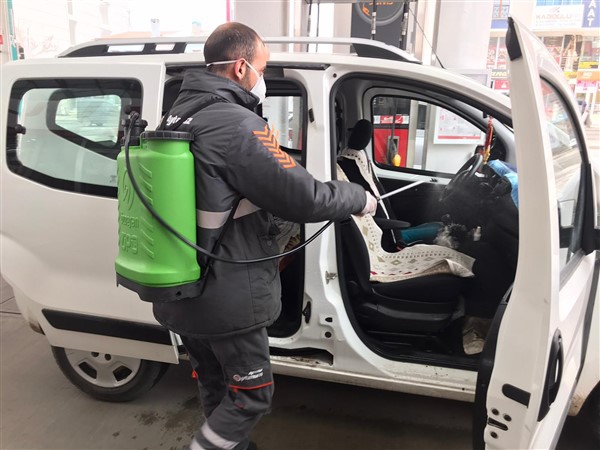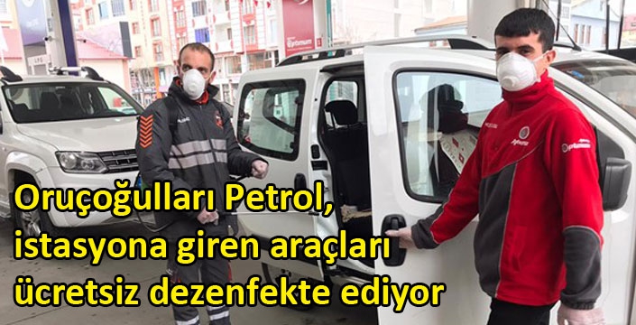 Oruçoğulları Petrole yakıt almak için giren bütün arabalar uzman görevliler tarafından ücretsiz dezenfekte ediliyor. Araçların kapı kolları, dış ve iç donanımları titizlikle dezenfekte edilerek daha sağlıklı yolculukların yapılması sağlanıyor.