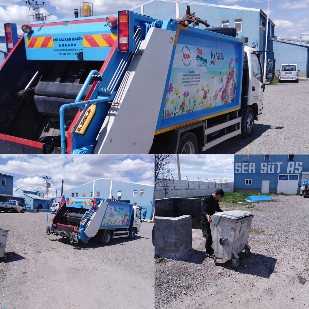 Kars Organize Sanayi Bölgesi, çöp toplama aracı ile çevre temizliği yapıyor.