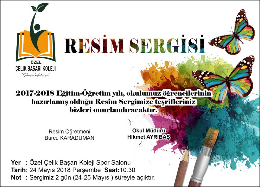 Kars Özel Çelik Başarı Koleji, geleneksel hale getirdiği resim sergisini bu yıl da 24 Mayıs 2018 Perşembe günü saat: 10.30’de açacak.
