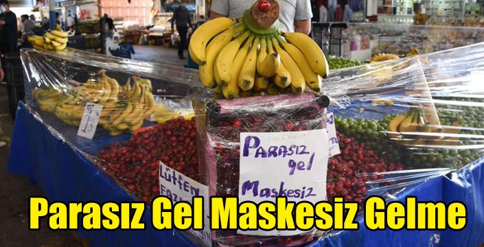 Sağlık Bakanı Fahrettin Koca, resmi twitter hesabından bir Pazar yerinde çekilen “Parasız Gel Maskesiz Gelme” yazılı fotoğrafı paylaştı.