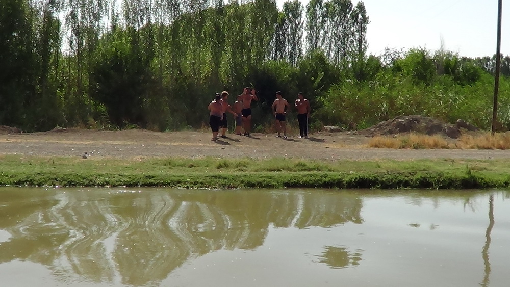 Doğu Anadolu Bölgesinin Çukur Ovası Iğdır’da sıcaktan bunalan çocuklar, vatandaşlar serinlemek için pis su kanallarına girerek yıkanıyorlar.