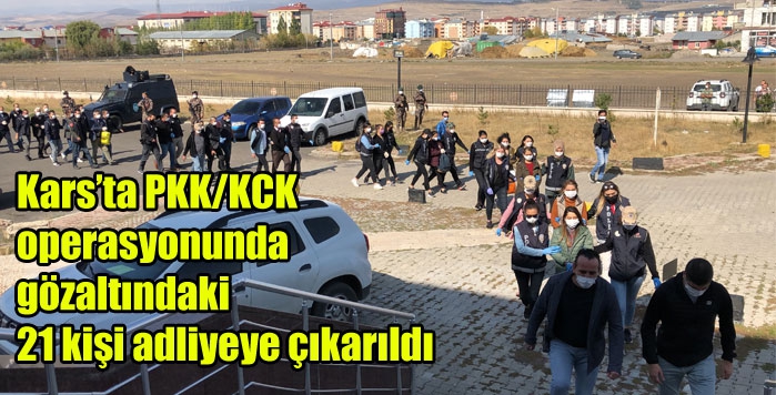 Terör örgütü PKK/KCK'ya yönelik Kars'ta yürütülen terör soruşturması kapsamında HDP'li Belediye Başkan yardımcıları ile HDP il ve bazı ilçe başkanlarının da arasında bulunduğu 21 kişi adliyeye sevk edildi.