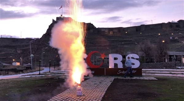 Ateşleyici yeterlilik belgesi bulunan Tacettin Durmuş iftar öncesi hazırlıklarını yaptı ve ezanın okunmasına 5 saniye kala fitili ateşledi.