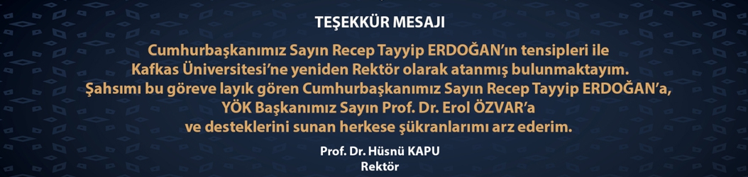 Cumhurbaşkanı Recep Tayyip Erdoğan'ın Kafkas Üniversitene yaptığı Rektör atamaları Resmi Gazete'de yayımlandı ve mevcut Rektör Prof. Dr. Hüsnü Kapu yeniden rektörlüğe atandı.
