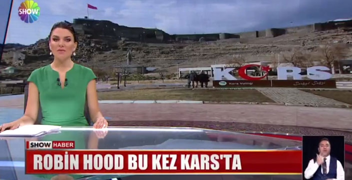 Kenar mahallerde içerisinde bin TL bulunan zarfları dağıtmasıyla Türkiye’de 'Robin Hood' adıyla anılan hayırsever işadamının Kars’ta yaptığı yardımların haberi Show TV ekranlarında geniş yer buldu.