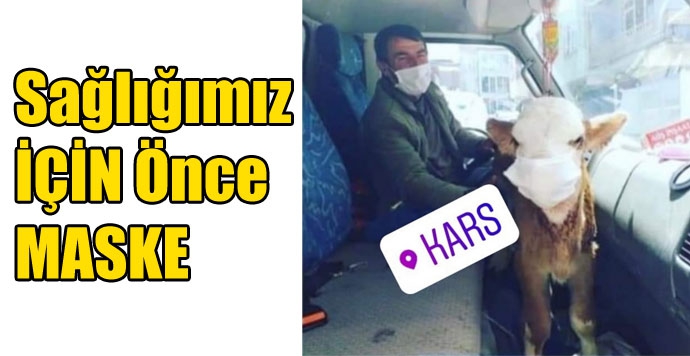Kars’ın Susuz ilçesinde Cengiz Yılmaz isimli vatandaş veteriner hekime götürdüğü hasta buzağısına maske takarak dikkat çekti.