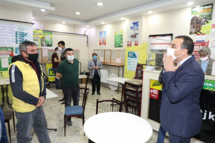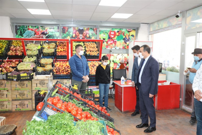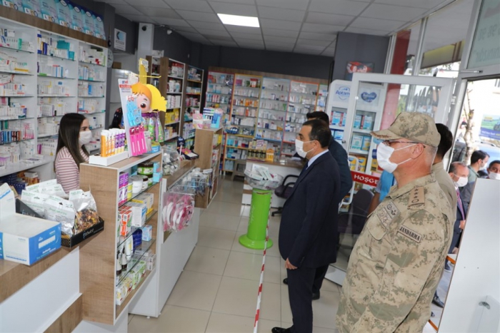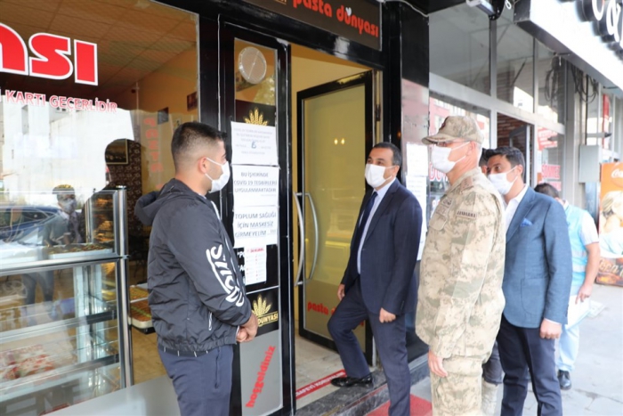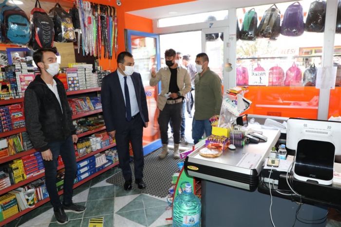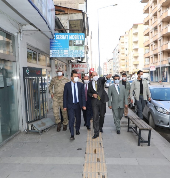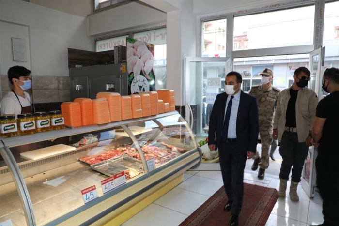 Esnafları ziyaret eden Vali Öksüz, Koronavirüs tedbirleri kapsamında alınan tedbirlerle uyulup uyulmadığını denetleyerek, uyarılarda bulundu.