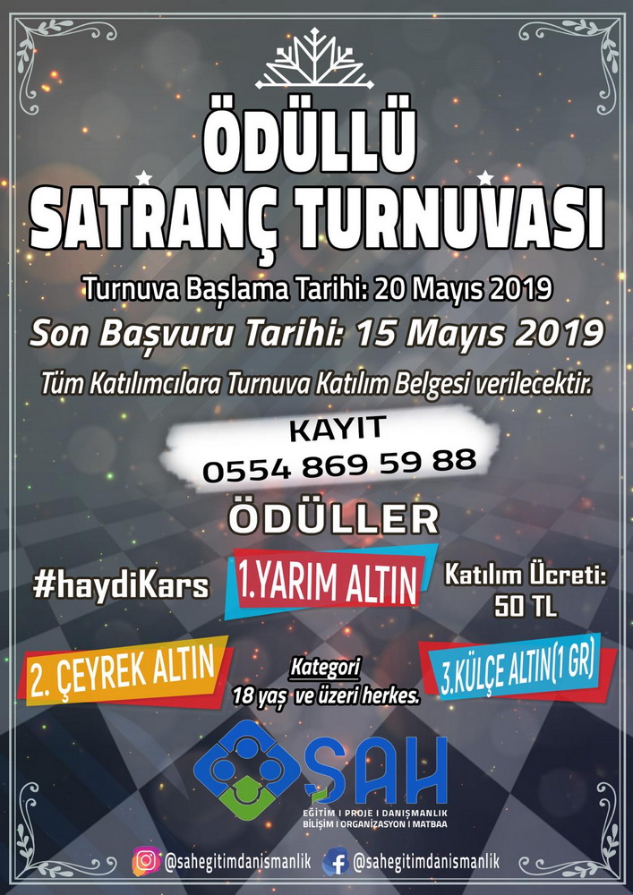 ŞAH Eğitim Proje Danışmanlık Bilişim Organizasyon Matbaa ödüllü satranç turnuvası düzenliyor.