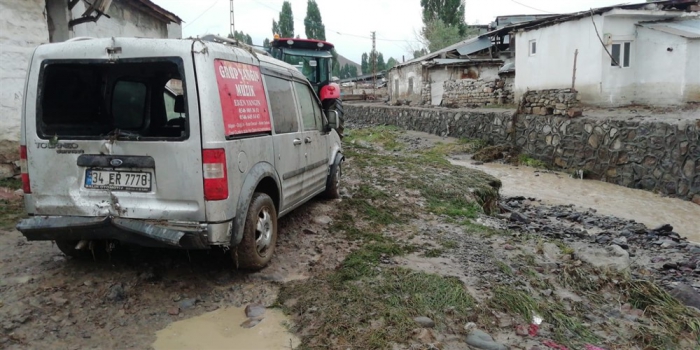 Sarıkamış İnkaya Köyünü sel vurdu Araçlar sele kapıldı