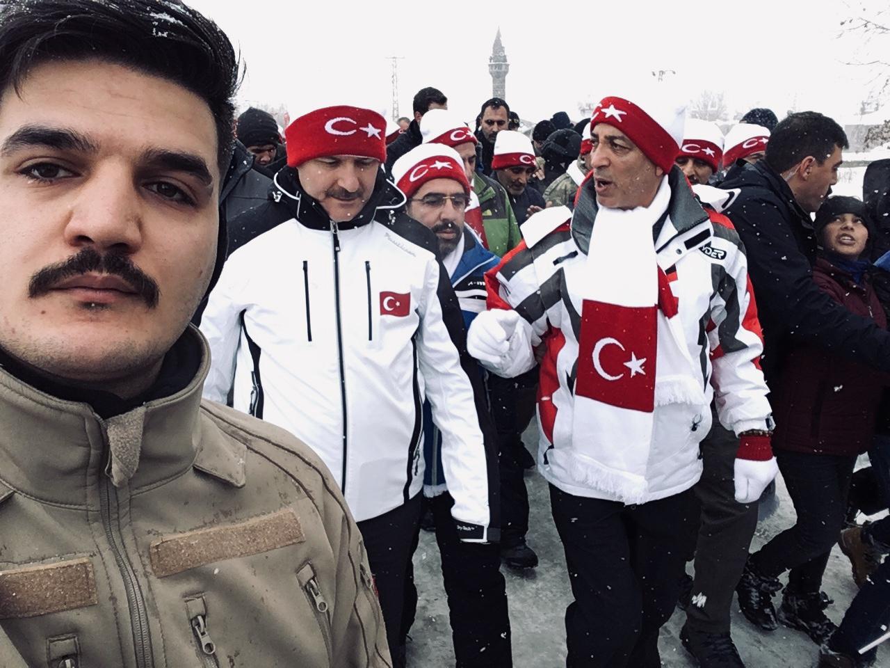 Kardan yapılan asker heykeli önünde toplanan öğrenciler, vatandaşlar ve sivil toplum örgütleri sabahın ilk ışıklarına kadar nöbet tuttular. Ankara'dan Kars'ın Sarıkamış ilçesine yaklaşık 800 kişi ile birlikte çıkarma yaptıklarını belirten Kars, Ardahan ve Iğdır Federasyonu Genel Başkanı Erdoğan Yıldırım her sene buradaki anma etkinliklerine katıldıklarını söyledi. Üç gün süren etkinliklere katılıp nöbetlerini tutup, yürüyüşlere katıldıklarını ifade eden Erdoğan, "Sarıkamış'a federasyonumuzun yönetim ve yüksek istişare kurulu ile birlikte yaklaşık 800 kişi ile birlikte geldik. Her yıl burada üç gün süren etkinliklere katılarak şehitlerimizi rahmet ve minnetle anıyoruz. Burası Çanakkale'nin alt yapısı. Kayıtsız ve şartsız kendini vatana feda etme destanıdır Sarıkamış. Onlar olmaza bu kadar rahat edemezdik. Zor bir coğrafyada yaşıyoruz, yaşayacağız da. Birlikte olmalıyız, ülkemize sahip çıkacağız çünkü başka bir Türkiye yok" diye konuştu.