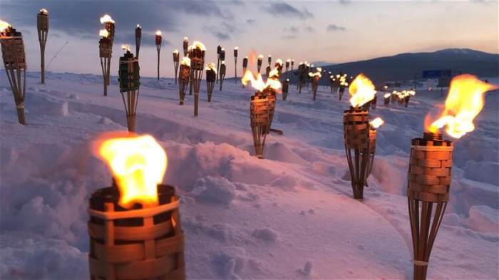 Öğrenciler daha sonra kar üzerine konulan meşaleler etrafında nöbetlerine devam edip, kahramanlık türküleri seslendirecekler.