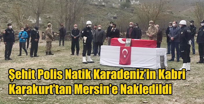Şehit Komiser Natık Karadeniz’in mezarı, Karakurt Köyü mezarlığında düzenlenen resmi tören ve dualar eşliğinde Mersin Toroslar Akbelen Şehitliği’ne defnedilmek üzere Mersin’e gönderildi.