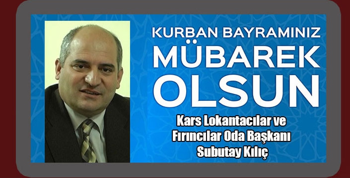 Kars Fırıncılar ve Lokantacılar Oda Başkanı Subutay Kılıç, mübarek Kurban Bayramı münasebetiyle kutlama mesajı yayınladı.