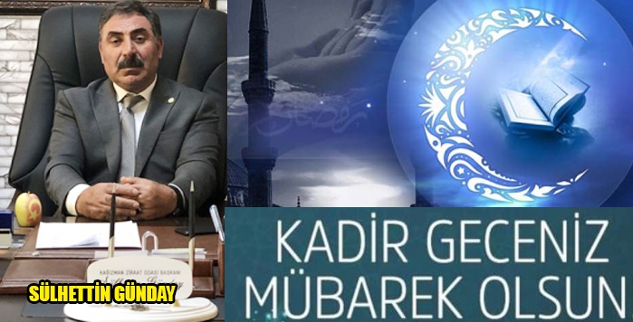 Kars Kağızman Ziraat Odası Başkanı Sülhettin Günday, mübarek Kadir Gecesi nedeniyle bir kutlama mesajı yayınladı.