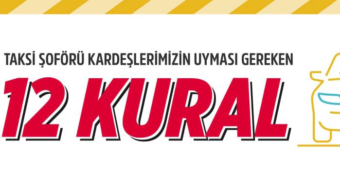 İçişleri Bakanlığımız tarafından son dönemde taksilerle ilgili yaşanan sıkıntılar nedeniyle taksi şoförlerinin uyması gereken 12 kuralın yazılı olduğu bir görsel hazırlandı.