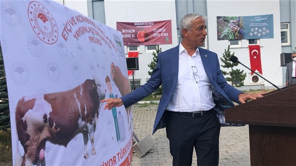 Bu bağlamda; “Suni Tohumlama Uygulamaları İle Etçi ve Kombine Irkların Yaygınlaştırılması Projesi” nin hayvancılık sektöründe büyük bir ivme yakalamamıza zemin hazırlayacak projelerden birisi olduğuna inanıyorum. Damızlık hayvan yetiştiriciliğinin temeli kabul edilen ve ıslah çalışmalarının vazgeçilmezi olan suni tohumlama işlemini uygulamaya koyacağımız bu proje ile yüksek verimli döller elde edilmiş, doğal tohumlamaya bağlı bulaşıcı hastalıklar önlenmiş, döl verimine bağlı kayıplar azalmış, damızlık ve kasaplık hayvan sayısı artırılmış ve etçi ırklar yaygınlaştırılarak kırmızı et üretimi de artırılmış olacaktır. Dolayısıyla; Proje sonunda elde edilecek besi materyallerinin genetik kapasitesinin yüksek olmasına bağlı olarak birim hayvan başına alınacak kırmızı et miktarı artacağından, projeden faydalanan üreticilerin gelir seviyesini de artırmış olacağız.” dedi.