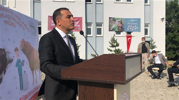Düzenlenen törende ilgili oda başkanları, köy muhtarları ve hayvan yetiştiricilerine proje anlatılarak, suni tohumlama ile etçi ve kombine ırkların yaygınlaştırılmasının önemine değinildi.