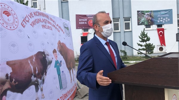 Bu kaliteyi daha da arttırmak için yeni bir proje başlatıyoruz. Toplamda 6 ili kapsayan bu proje ile 2020 yılı için hesaplara aktarılacak olan 15 milyon liralık bu projede ilimiz için yaklaşık 5milyon TL bir kaynak aktarılacaktır. Bu proje ile ilimizde en az 8 ekip kurum personelimizle ayrıca birlik personeli ve durumu uygun olan serbest hekimlerle ilimizde suni tohumlamanın arttırılmasına çalışacağız. Öncelikle hızla tank termos sperma gibi sarf malzemeleri ile kiralık araç ve yakıt gibi ihtiyaçların ihalesini yapacağız. Üç yıl süresince uygulanacak bu projede proje kaynağından uygulayıcılar desteklenecek olup yetiştiricimizden sadece 15 TL gibi çok cüzi bir fiyata tohumlama yapılacaktır. Yani yetiştiricimize bedava diyebileceğimiz bir fiyatla suni tohumlama yapacağız. Tohumlama sonrası gebe kalıp doğan buzağılardan da yine yüksek düzeyde buzağı desteği alacaktır. Bu yılın destekleme tebliği çıkıp fiyatlar netleşmedi bekliyoruz ama geçen yılın destekleme fiyatlarını baz alırsak yaklaşık 925 lira da bu buzağıdan nakdi destek alacaktır. Tüm bunların yanında bu projeyi tam olarak hayata geçirdiğimizde; sığır ırklarımızın kültür ırkı oranını artırarak daha kaliteli sürüler elde edeceğiz. Kaliteli damızlık ve kasaplık hayvan elde edeceğiz. Tabi tohumlamada bulaşma ihtimali olan hastalıklar azaltılmış olacak.” dedi.