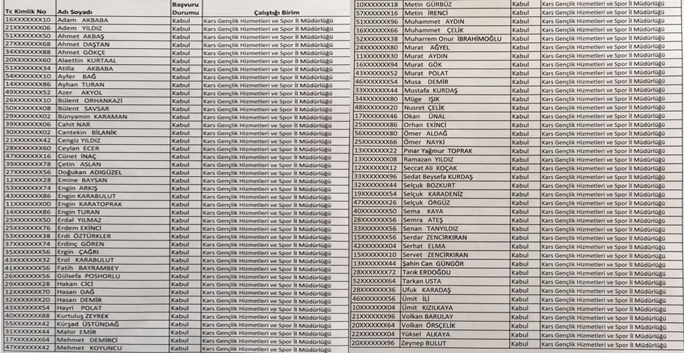 696 Sayılı KHK'nin 127 Maddesinin Geçici 23 ve 24. Maddesi Gereği Kars Gençlik Hizmetleri ve Spor İl Müdürlüğü ve Bağlı Kuruluşlarımızda Hizmet Alım Sözleşmesi kapsamında olup; Taşeronda Çalışan İşçilerin Sürekli İşçi Kadrolarına Geçişi Başvuru Sonuçları;
