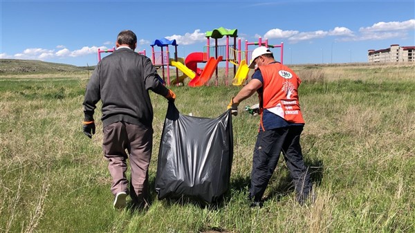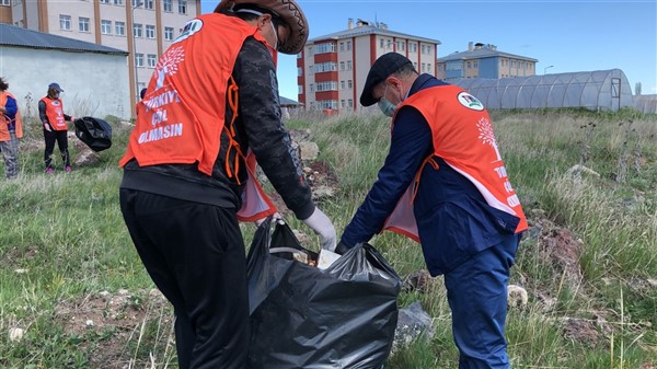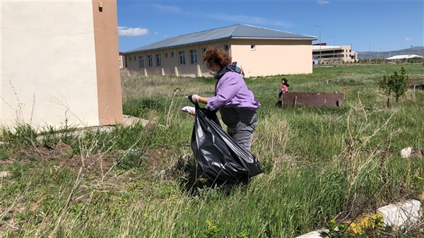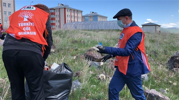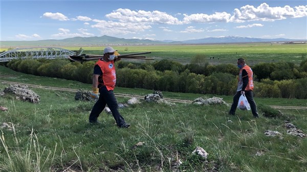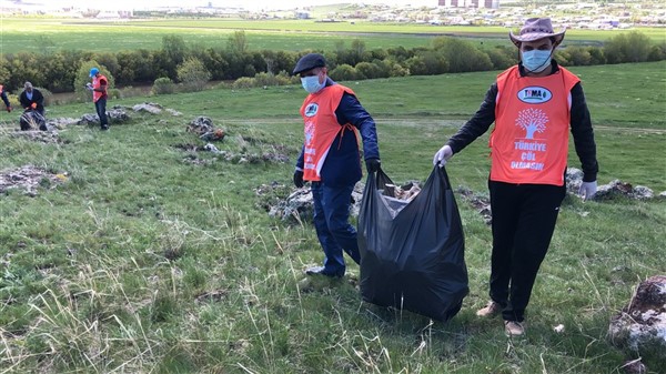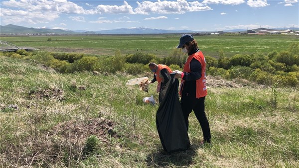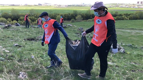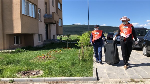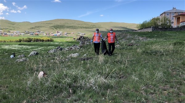 Yüzlerinde maskeler, ellerinde eldivenlerle alana dağılan gönüllüler çevredeki poşet, çöp, plastik atıkları toplayarak çöp kutularına bıraktılar.