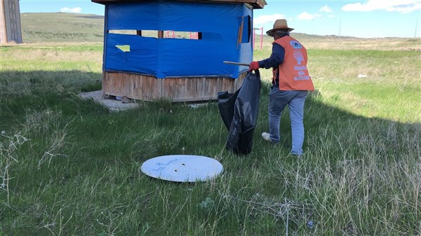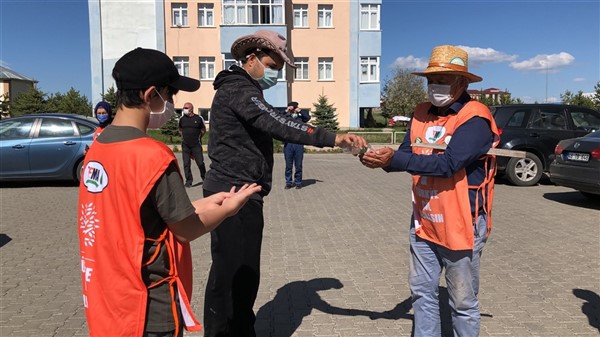 Etkinliğin tamamlanmasından sonra çöp temizliği yapanlar ellerini dezenfekte ettiler.