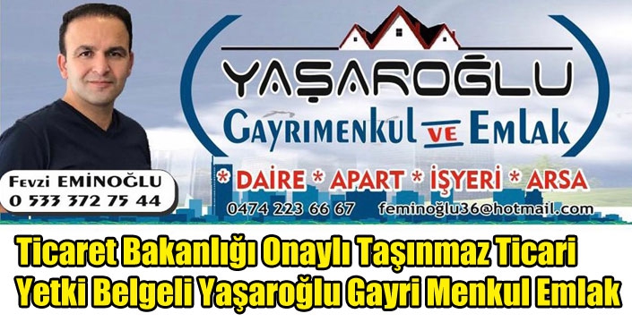 Ticaret Bakanlığı Onaylı Taşınmaz Ticari Yetki Belgeli Yaşaroğlu Gayri Menkul Emlak