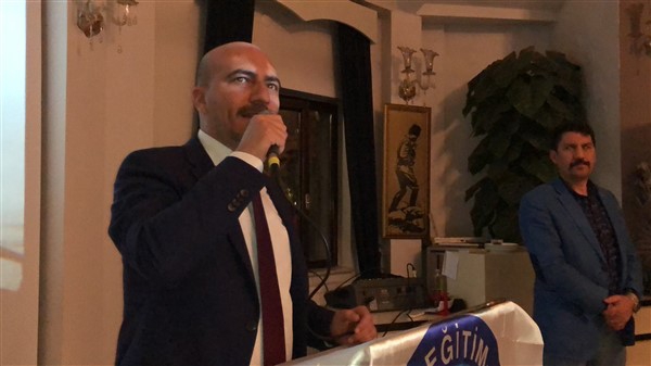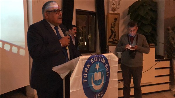 Ardından Başkanı Fahrettin Şimşekler ve Türk Eğitim Sen Genel Başkan Yardımcıları Mehmet Yaşar Şahindoğan ve Fuat Yiğit birer konuşma yaptılar.