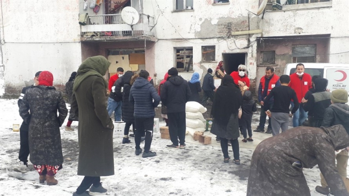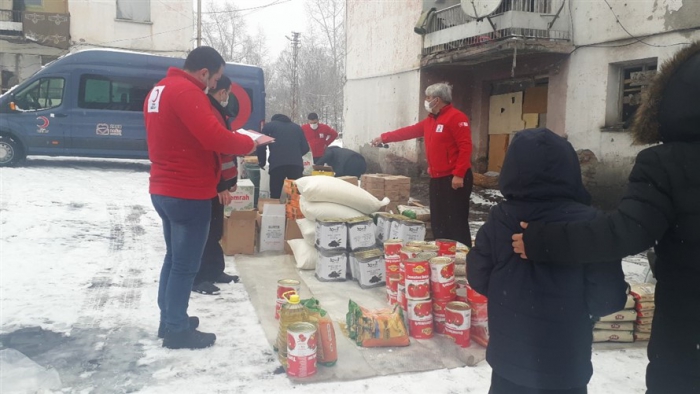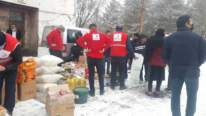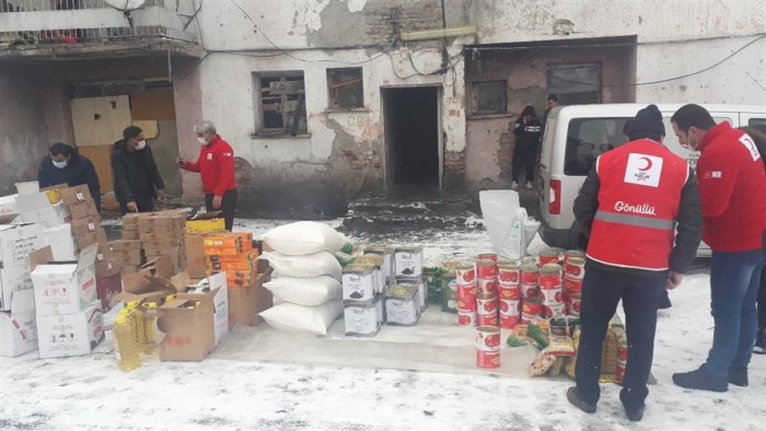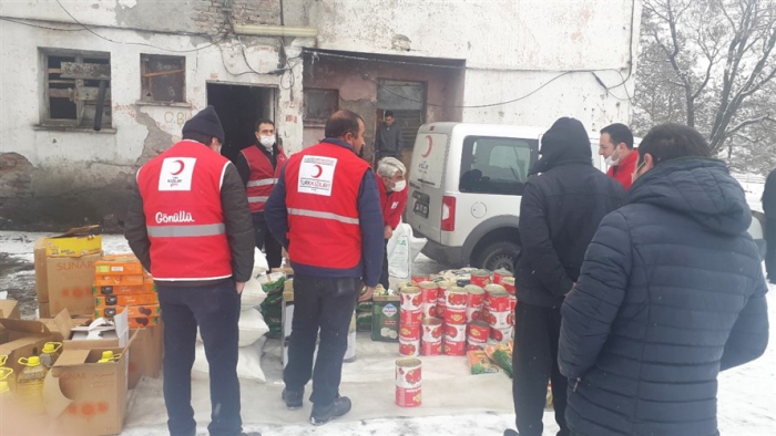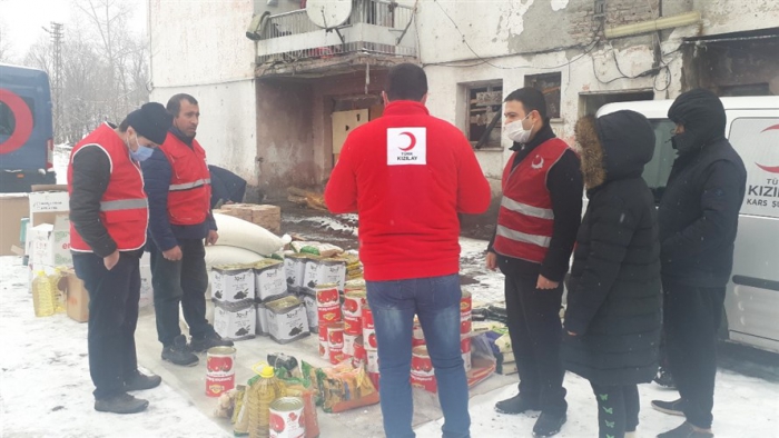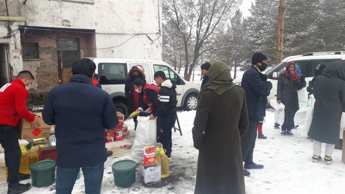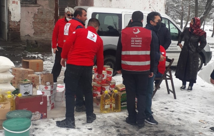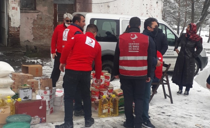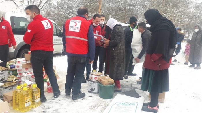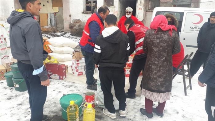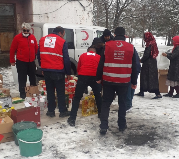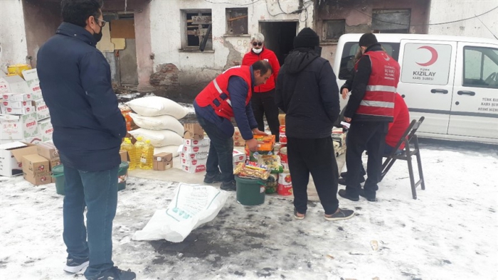Türk Kızılay’ı Kars şubesi, Afganistan'dan Kars'a gelen mülteci ailelere gıda yardımında bulundu.
