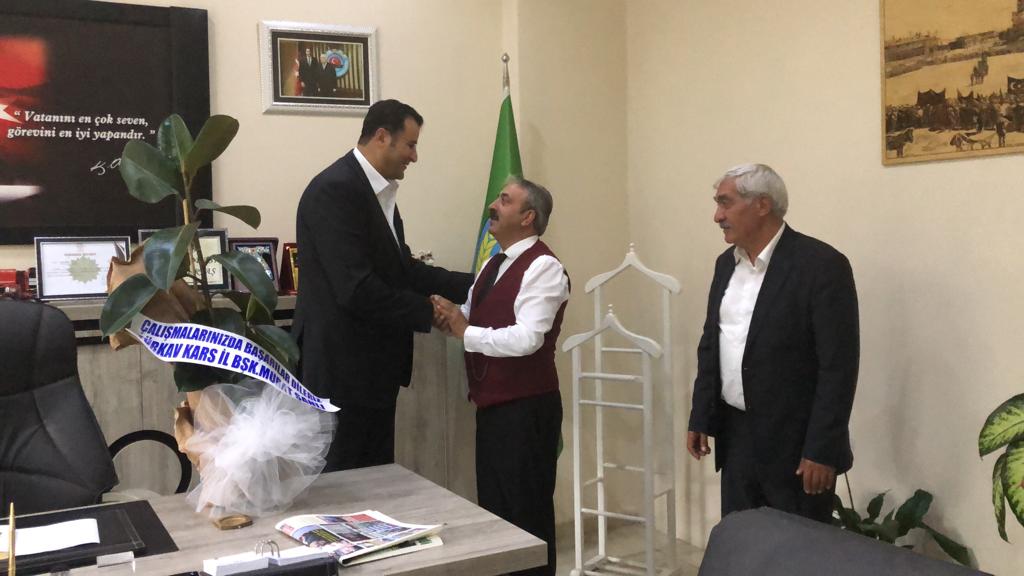 Türkiye Kamu Çalışanları Vakfı (TÜRAV) Kars Şube Başkanı Murat Şanlı, yönetimiyle birlikte Ziraat Odası Başkanı Adem Ertaş’ı ziyaret ederek, TZOB yönetimi ve Doğu Anadolu Bölge temsilciliğine seçilmesinden dolayı başarı dileklerini ilettiler.