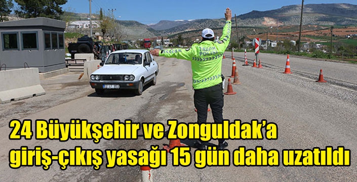 İçişleri Bakanlığı, 81 İl Valiliğine gönderdiği 'Şehir Giriş, Çıkış Tedbirleri' genelgesi ile büyük şehir statüsündeki 23 il ve Zonguldak'a kara, hava ve deniz yolu ile yapılacak tüm giriş/çıkışlar, bu gece saat 24.00'dan itibaren daha önce belirlenen usul ve esaslara göre 15 gün daha uzattı. Ayrıca, yine büyükşehir statüsünde yer alan Aydın, Antalya, Erzurum, Hatay, Malatya, Mersin ve Muğla illerine hava, kara ve deniz yoluyla yapılacak giriş/çıkış kısıtlaması ise kaldırıldı.