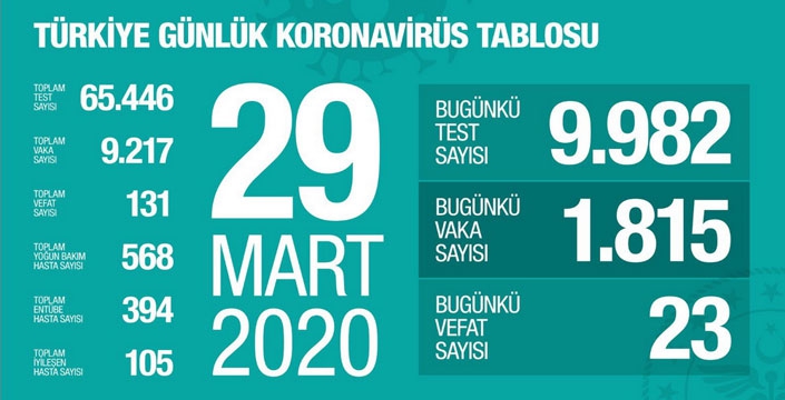 Türkiye’de korona virüsten 23 kişi daha öldü