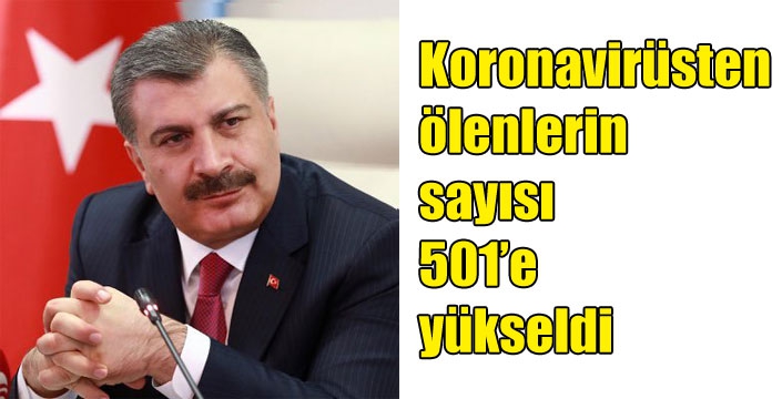 Sağlık Bakanı Fahrettin Koca, koronavirüsten son 24 saatteki verileri paylaştı. Son 24 saatte hayatını kaybedeblerin sayısı 76 kişi artarak 501'e yükseldi.