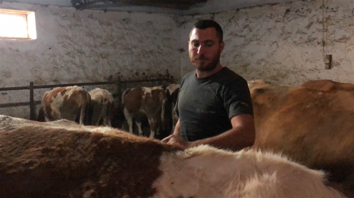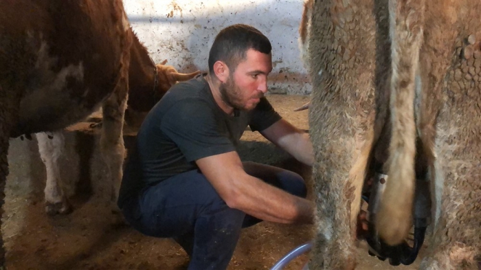 “Aras Aras Han Aras” türküsü eşliğinde ahırdaki hayvanlarına bakarak çevresine de mutluluk saçan Barış Özbaş, “İyi ki köyüme gelmişim ve hayvancılık yapıyorum. Şimdi daha çok kazanıyorum. Bir de destek almadan kendi imkanlarımla ahır yaptım. Ailece mutlu bir şekilde yaşıyoruz.” Dedi.