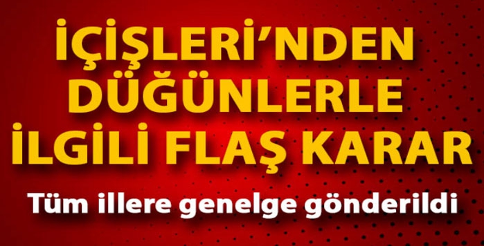 İçişleri Bakanlığı, Bilim Kurulu'nun bugünkü toplantısında alınan tavsiye kararı ve Cumhurbaşkanı Recep Tayyip Erdoğan'ın talimatları doğrultusunda, 81 il valiliğine 'Covid-19 Tedbirleri' konulu ek genelge gönderdi. Genelgede, daha önce valiliklere gönderilen genelgelerle salgının kalabalık ortamlardaki yayılım hızı göz önünde bulundurularak düğün, nişan, sünnet düğünü ve benzeri etkinliklerin tüm illerde mümkün olan en kısa sürede tamamlanması, köylerde veya sokaklarda yapılan bu etkinliklerin aynı gün içinde kalacak şekilde saat sınırlamalarının il / ilçe hıfzıssıhha kurullarınca belirlenmesinin istenildiği hatırlatıldı.