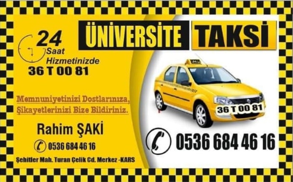 Kars’ta Şehitler Mahallesi Turan Çelik Caddesi üzerinde hizmet veren Üniversite Taksi, 24 saat kesintisiz hizmet veriyor.