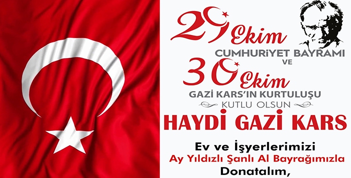Kars Valisi ve Belediye başkan Vekili Türker Öksüz, Kars halkına çağrıda bulunarak, 29 Ekim Cumhuriyet Bayramı ve 30 Ekim Kars’ın düşman işgalinden kurtuluşunun 102. Yıldönümünde Gazi Kars’ın bayraklarla donatılmasını istedi.