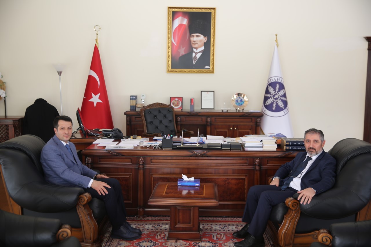 Ardahan Vali Yardımcısı Abdurrezzak Canpolat veda ziyaretleri kapsamında Ardahan Üniversitesi Rektörü Prof. Dr. Mehmet Biber’i rektörlük makamında ziyaret etti. Ziyaretten dolayı memnuniyetini belirten Rektör Biber,