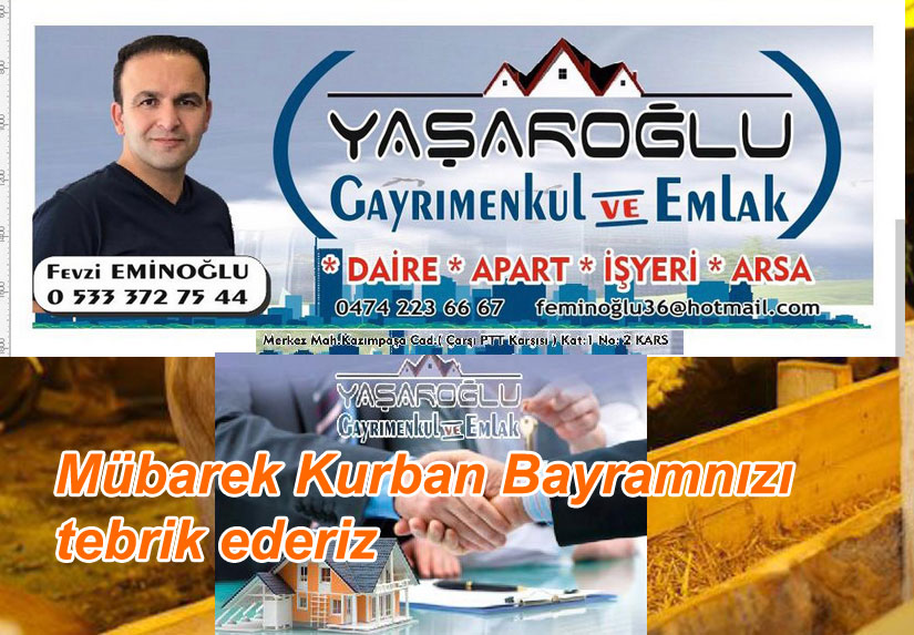 Kasımpaşa cad Aslanoğlu işmerkezi Kat: 1 No: 2 Kars adresinde hizmet veren Yaşaroğlu Gayrimenkul ve Emlak sahibi Fevzi Eminoğlu, Kurban Bayramı dolayısıyla mesaj yayımladı.