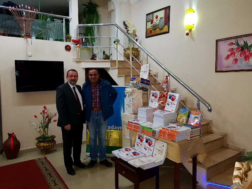 TSYD Kars il Başkanı Yasin Aşkın Yıldırım, Kars'ın Akyaka İlçesinde bulunan 70. Yıl Hüseyin Öztürk Orta Okul Aile Birliği Başkanı Erol Korkmaz'ın tespit ettiği 60 öğrenciye verilmek üzere bütün derslerden oluşan soru bankası kitapları, roman ve hikayeler ile Dünya Çocuk Klasikleri setlerini Başkan Korkmaz'a ofisinde teslim etti.