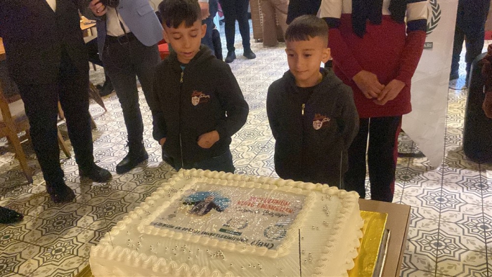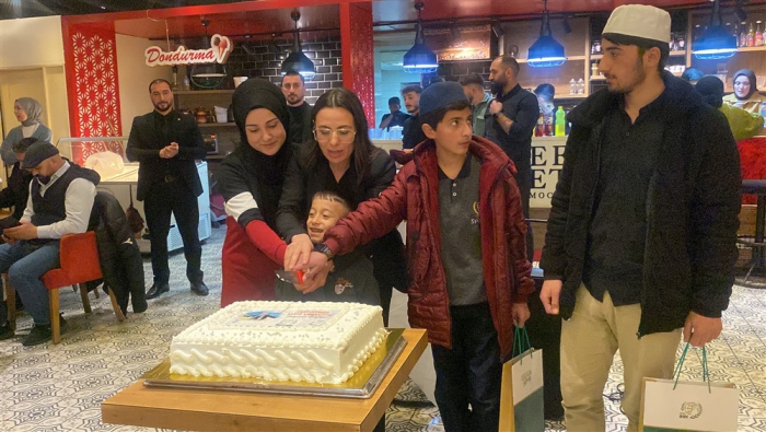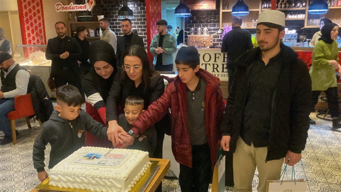 Konuşmanın ardından doğum günü kutlamasına geçildi. Hasan, Hüseyin, Rabia, Abdullah ve Halil İbrahim için hazırlanan doğum günü pastası hep birlikte alkışlar eşliğinde kesildi.