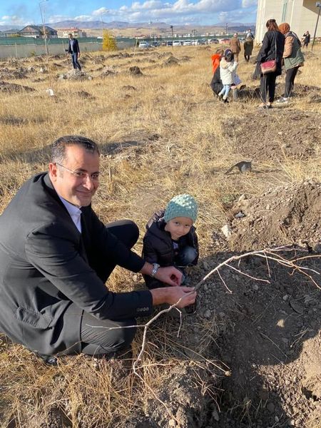 Başkan Ertaş bugün de Kars Cumhuriyet Başsavcısı Abdullah Amanvermez’in daveti üzerine Kars Adliyesi’nin bahçesinde öğrencilerle birlikte ağaç ekimi yaptı.